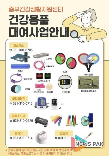 뉴스팍 배상미 기자 | 시흥시 중부건강생활지원센터는 시민의 건강생활 실천을 돕기 위해 헬스박스, 혈압ㆍ혈당, 염도계, 재활 소도구, 유축기 등 다양한 건강용품 대여 사업을 운영하고 있다.