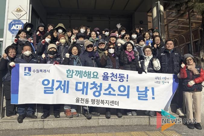 뉴스팍 배상미 기자 | 수원시 장안구 율천동 행정복지센터는 지난 6일, 민족 최대의 명절인 설 연휴를 대비하여 통장협의회 및 직원 등 60여 명이 함께 참여하여 설맞이 일제 대청소를 실시했다.