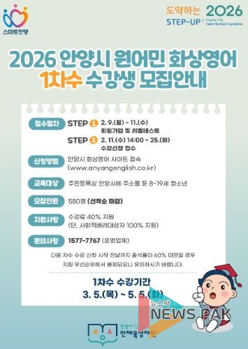 뉴스팍 배상미 기자 | 안양시 인재육성재단은 관내 학생들의 외국어 의사소통 능력 향상과 글로벌 역량 강화를 위해 ‘2026 안양시 원어민 화상영어’ 사업을 지속 운영한다고 9일 밝혔다.
