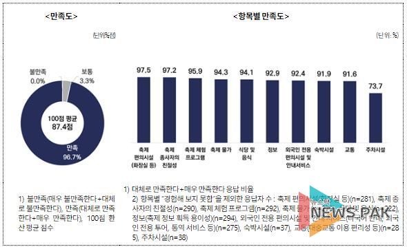 실제 외국인 축제 만족도는 평균 87.4점으로 나타났으며, 응답자의 98%는 ‘타인에게 추천할 의향이 있다’고 답했다. 2026년 재방문 의향 역시 80.7%로 조사돼, 일회성 방문이 아닌 반복 방문 가능성도 확인됐다.