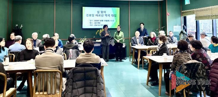 뉴스팍 배상미 기자 | 수원특례시 영통구 광교1동은 설 명절을 앞둔 지난 10일 광교1동 주민자치회가 관내 음식점에서 지역 경로당 어르신들을 모시고 떡국 등 음식을 대접하는 ‘설맞이 경로당 어르신 떡국 대접’ 행사를 개최했다고 밝혔다.
