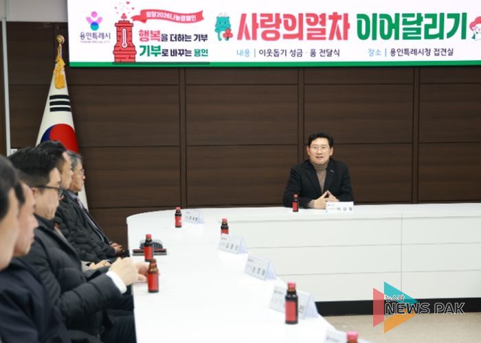 뉴스팍 배상미 기자 | 용인특례시는 연말연시 기부 릴레이 ‘사랑의열차 이어달리기’가 목표액을 초과 달성한 가운데, 나눔에 참여한 기관들의 성금·성품 전달이 계속 이어지고 있다고 12일 밝혔다.