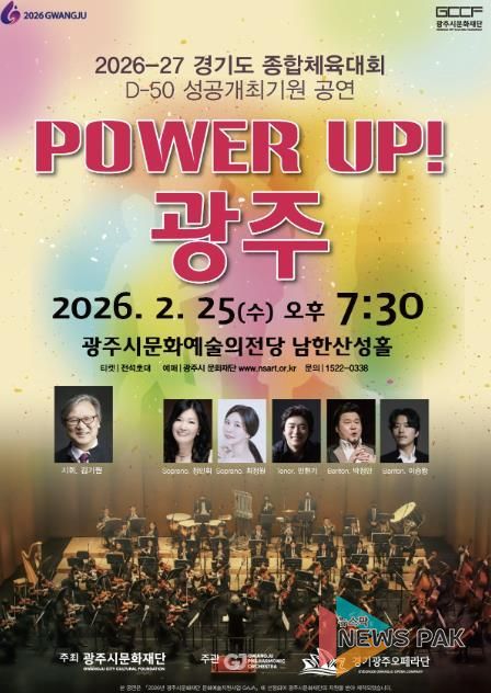 뉴스팍 이화형 기자 | 광주시문화재단은 오는 25일 ‘제72회 경기도체육대회 및 제16회 경기도장애인체육대회 2026 광주’의 성공 개최를 기원하고 대회 개막 50일 전을 기념하기 위한 ‘파워업! 광주’ 공연을 개최한다고 13일 밝혔다.