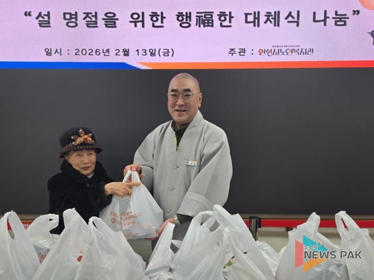 뉴스팍 배상미 기자 | 대한불교조계종사회복지재단이 운영하는 안성시노인복지관은 설 명절 연휴를 맞아 2월 13일 무료급식 이용 어르신들의 결식 예방과 안정적인 식생활 지원을 위해 ‘2026년 설 명절을 위한 행福한 대체식 나눔’을 진행했다.