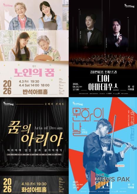 뉴스팍 류은정 기자 | 화성시문화관광재단은 오는 4월, 다채로운 장르의 기획 공연을 선보인다. 삶을 이야기하는 연극부터 세계적인 클래식 스타의 무대, 스토리텔링 형식 오페라 콘서트, 유튜브에서 만나던 탁보늬의 렉처 콘서트까지. 세대를 아우르는 프로그램을 통해 시민 누구나 자신의 취향에 맞는 공연을 선택할 수 있도록 기획했다.