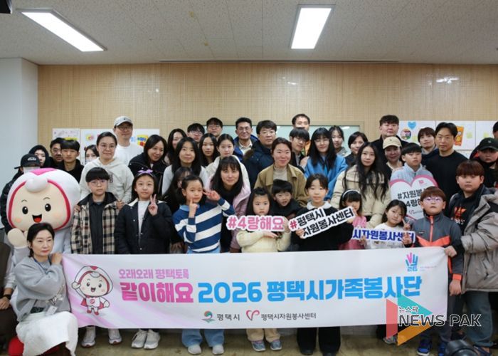 뉴스팍 이소율 기자 | 평택시자원봉사센터는 지난 21일 14가족 46명이 참여하여 ‘2026년 가족봉사단’ 발대식을 개최하고, 올해 활동의 힘찬 출발을 알렸다.