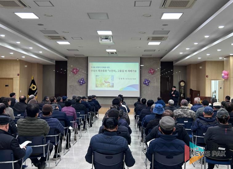 뉴스팍 배상미 기자 | 안성시농업기술센터 남부농업기술상담소는 지난 24일 미양농협 2층 교육장에서 안성시 지역 특화 품종인 ‘수찬미’의 재배 안정성과 품질 고급화를 위한 재배기술 교육을 개최했다.