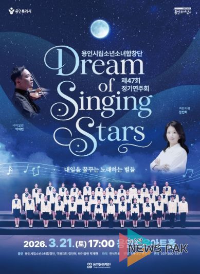 뉴스팍 배상미 기자 | 용인문화재단은 오는 3월 21일 용인포은아트홀에서 용인시립소년소녀합창단 제47회 정기연주회'Dream of Singing Stars'를 개최한다고 밝혔다.