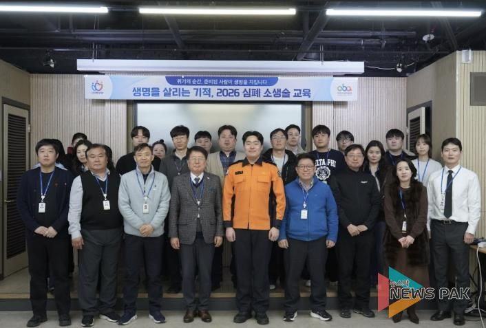 뉴스팍 배상미 기자 | 안양산업진흥원은 26일 본원 지하 강당에서 안양소방서와 협력해 ‘생명을 살리는 기적, 2026 심폐소생술 교육’을 실시했다. 이번 교육에는 직원 30여 명이 참석해 심폐소생술의 중요성을 직접 체험하며 안전 역량을 강화하는 시간을 가졌다.