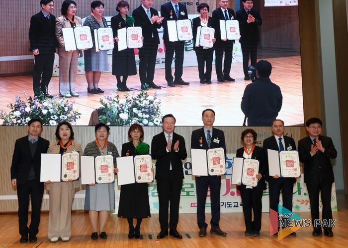 뉴스팍 배상미 기자 | 경기도교육청이 27일 경기과학고등학교 대강당에서 퇴직 교원 727명을 대상으로 훈․포장과 표창장 전수식을 거행했다. 오랜 기간 학생 교육을 위해 헌신한 퇴직 교원들의 노고를 기리고, 존경과 감사를 표하기 위해 마련한 자리다.