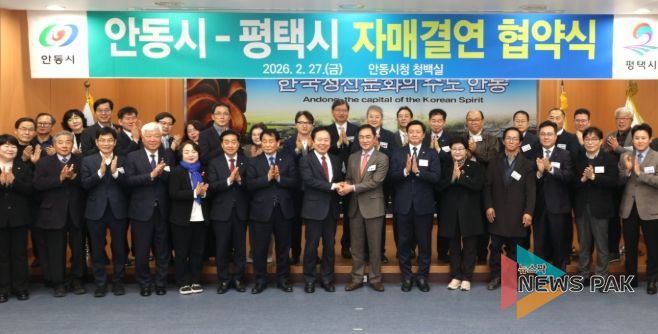 뉴스팍 이소율 기자 | 평택시의회는 2월 27일, 안동시청에서 평택시-안동시 자매결연 협약식에 참석해 양 도시의 상생 발전을 다짐했다.