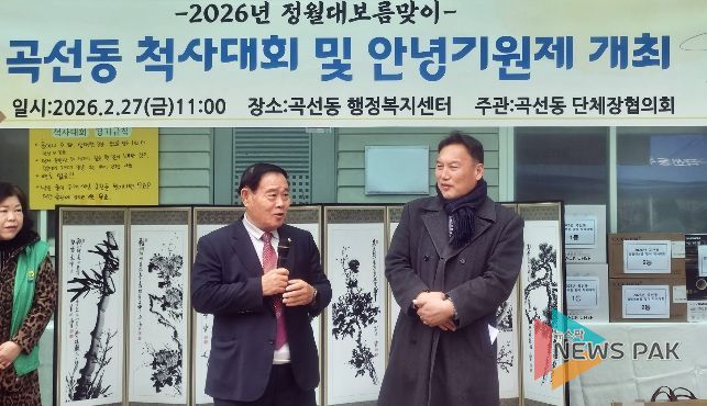 뉴스팍 배상미 기자 | 수원특례시의회는 2월 27일 곡선동 행정복지센터에서 열린 정월대보름 척사대회에 참석해 주민들과 함께 한 해의 건강과 풍요를 기원했다. 이날 행사에는 기획경제위원회 장정희 위원장(더불어민주당, 권선2·곡선), 도시미래위원회 이찬용 위원장(국민의힘, 권선2·곡선)도 함께했다.