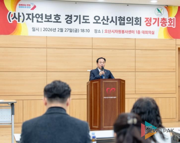 뉴스팍 이소율 기자 | 오산시는 지난 2월 27일 오산시 자원봉사센터 대회의실에서 (사)자연보호경기도오산시협의회 2026년 정기총회를 개최했다고 밝혔다.