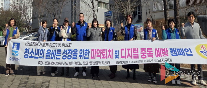 백인서 광교1동 바르게살기운동위원회 위원장은 “청소년들이 바르게 성장할 수 있도록 지역사회가 함께 관심을 갖는 것이 중요하며, 앞으로도 지속적인 캠페인과 활동을 통해 건강한 지역사회 조성에 앞장서겠다”고 밝혔다.