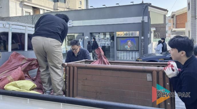 뉴스팍 배상미 기자 | 수원시 팔달구 행궁동은 4일 다가오는 봄을 맞아 행리단길 일원의 쾌적한 보행 환경 조성을 위해 방치된 화분들을 일제 정비했다.