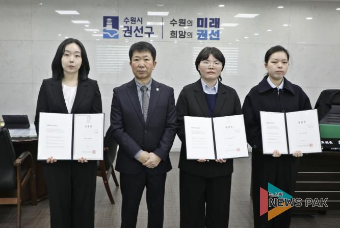 뉴스팍 배상미 기자 | 수원시 권선구는 지난 5일, 권선구청 2층 집무실에서 신규 공직자 3명이 참석한 가운데 임용장 수여식을 개최했다.