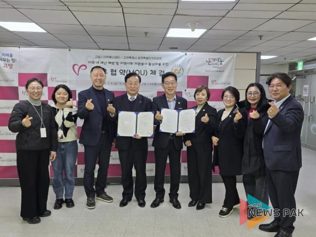 뉴스팍 배상미 기자 | 고양시자원봉사센터가 지난 6일 고양특례시 강원특별자치도민회와 ‘지역 내 재난 예방 및 지역사회 자원봉사 활성화’를 위한 업무협약을 체결했다.