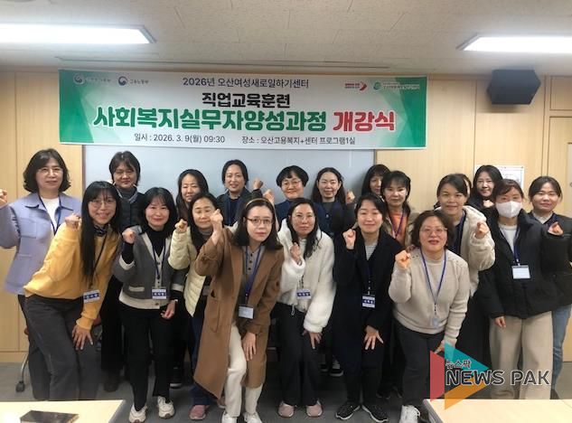 뉴스팍 이소율 기자 | 오산시는 지난 9일 오산고용복지+센터 내에 위치한 오산여성새로일하기센터에서 경력보유여성의 직업 역량 강화와 재취업 지원을 위한 직업교육훈련 ‘사회복지실무자 양성과정’ 개강식을 개최했다고 밝혔다.