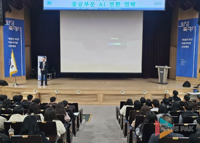 뉴스팍 류은정 기자 | 화성특례시는 10일 시청 대강당에서 인공지능(AI) 기술을 행정 전반에 적극 활용하기 위해 전 직원을 대상으로 AI 전환(AX) 교육을 실시했다.