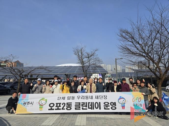 뉴스팍 이화형 기자 | 광주시 오포2동은 지난 10일 다가오는 ‘2026년 제72회 경기도체육대회’와 ‘제16회 경기도장애인체육대회’의 성공적인 개최를 기원하며 민관합동 대청소를 했다.