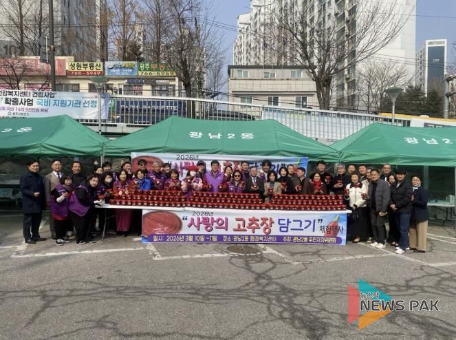 뉴스팍 이화형 기자 | 광주시 광남2동 주민자치위원회는 광남2동 행정복지센터에서 지난 10일과 11일 이틀간 ‘2026 사랑의 고추장 담그기 체험 및 판매행사’를 개최했다.