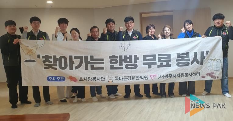 뉴스팍 이화형 기자 | 효사랑봉사단은 지난 8일 광주시 송정동 행정타운 아이파크 경로당을 방문해 지역 어르신들을 대상으로 찾아가는 한방 의료봉사 활동을 실시했다.