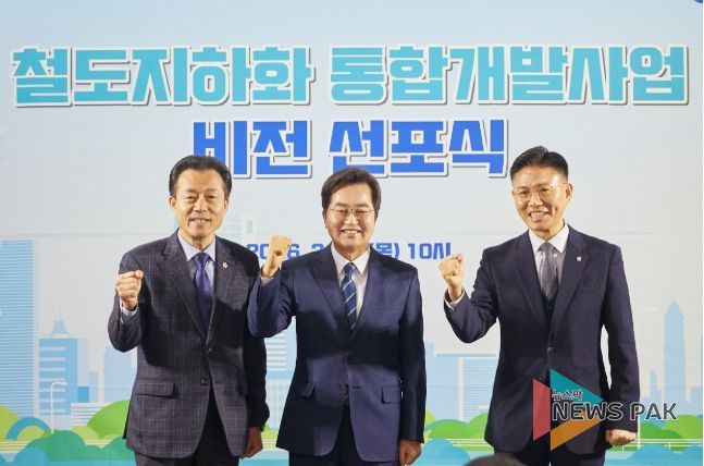 뉴스팍 배상미 기자 | 경기도의회 건설교통위원회 김성수 의원(더불어민주당, 안양1)은 12일 안양역에서 열린 ‘철도지하화 통합개발사업 비전선포식’에 참석하여 경부선 안양 구간의 조속한 철도지하화사업 대상지 선정을 촉구하고 강력한 추진 의지를 피력했다.