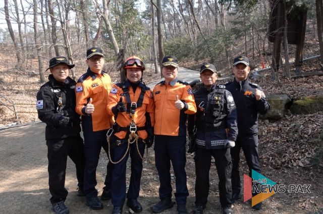 이번 훈련은 봄철 등산객 증가에 대비해 산악사고 발생 시 신속하고 안전한 구조 활동을 수행할 수 있도록 현장 대응 능력을 강화하기 위해 마련됐다. 훈련에는 용인소방서 길영관 서장을 비롯한 구조대와 펌프차 구조대 등약 30여 명이 참여했다.