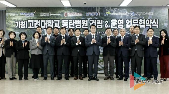 시는 18일 동탄구청 대회의실에서 한국토지주택공사(LH), 고려대학교 의료원, 컨소시엄 대표사(리즈인터내셔날, 우미건설, 미래에셋증권)와 함께 ‘(가칭)고려대학교 동탄병원 건립 지원 및 성공적 사업 추진을 위한 업무 협약’을 체결했다.