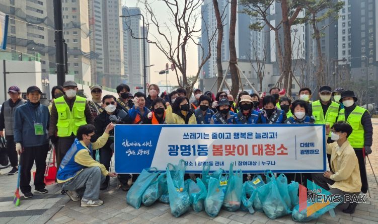 뉴스팍 배상미 기자 | 광명시 광명1동 행정복지센터는 지난 17일 깨끗하고 쾌적한 생활환경을 조성하기 위해 유관 단체와 주민들과 함께 ‘봄맞이 대청소’를 실시했다.