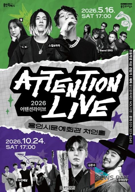 뉴스팍 배상미 기자 | 용인문화재단은 용인시문예회관 처인홀에서 청년층을 주요 대상으로 한 라이브 공연 브랜드 '2026 어텐션 라이브'를 상·하반기 두 차례에 걸쳐 개최한다.