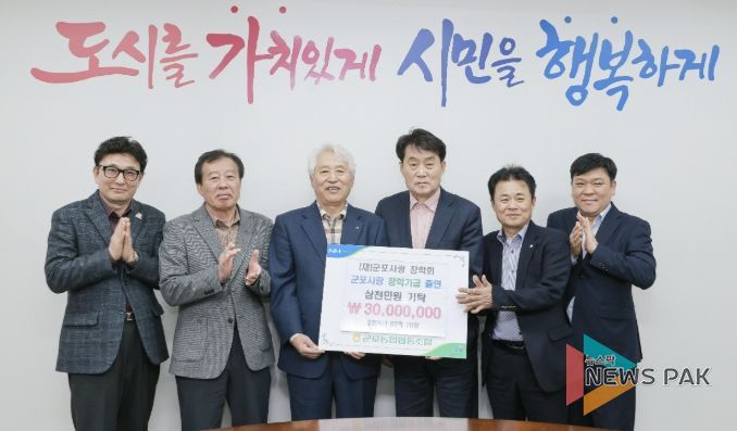 뉴스팍 배상미 기자 | 군포농협 이명근 조합장은 3월 20일 군포시청 시장실에서 (재)군포사랑장학회에 지역 인재 육성을 위해 써 달라며 장학금 3천만원을 기탁했다.