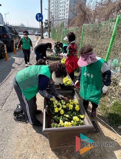 뉴스팍 이소율 기자 | 평택시 신장2동 행정복지센터는 지난 23일 새마을부녀회 회원과 동 직원 등 30여 명이 참여한 가운데, 관내 주요 도로변 및 도시재생구역 일대에 봄꽃 심기 작업을 했다고 밝혔다.