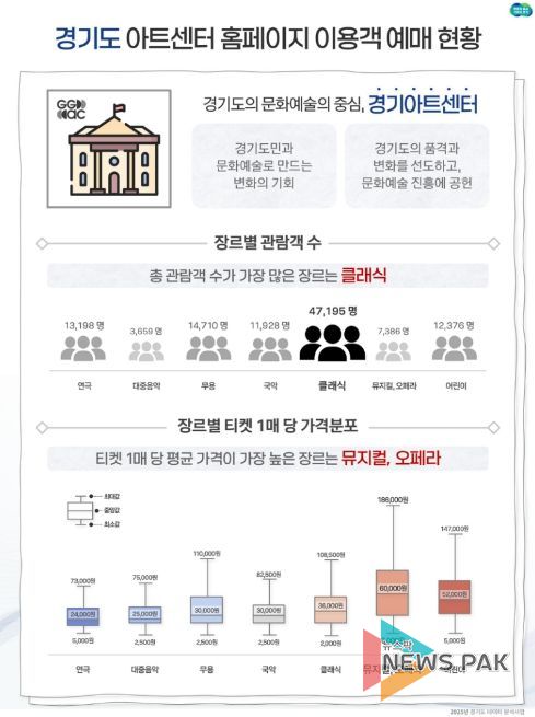 경기아트센터 공연 예매 데이터 분석에서는 클래식 장르 관람객이 약 4만 7천 명으로 가장 높은 선호도를 보였다. 도는 이러한 데이터를 향후 수요자 맞춤형 공연 기획의 기초 자료로 활용할 계획이다.