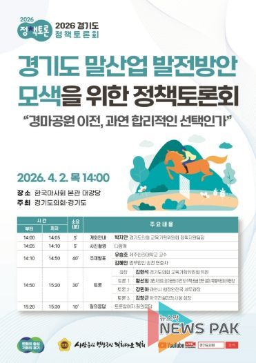 뉴스팍 배상미 기자 | 경기도의회 교육기획위원회 김현석 의원(국민의힘, 과천)은 오는 2일 오후 2시 한국마사회 본관 대강당에서 ‘경기도 말산업 발전방안 모색을 위한 정책토론회’를 개최한다고 밝혔다.