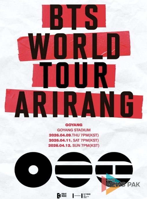 오는 4월 9일, 11일, 12일 3일간 고양종합운동장에서 ⌜BTS 월드투어 ‘아리랑’ 인 고양⌟이 개최된다. 광화문광장에서 열린 컴백쇼로 완전체 귀환을 알린 BTS가 본격적인 월드투어 대장정의 첫 무대를 고양시에서 선보인다. 공연은 3회차 전석 매진을 기록했으며 사흘간 약 12만 명 관람객이 방문할 것으로 예상된다.
