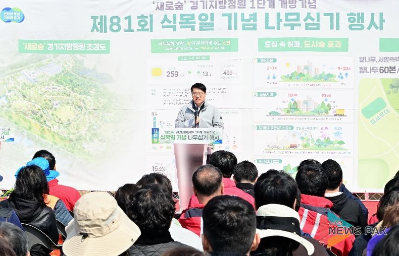 뉴스팍 배상미 기자 | 경기도는 제81회 식목일을 기념해 2일 안산시 본오동 소재 ‘새로숲 경기지방정원’ 부지에서 나무심기 행사를 개최했다.