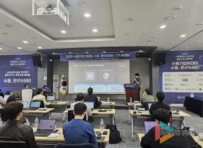 뉴스팍 배상미 기자 | 수원특례시가 2일 수원벤처밸리2 기업지원센터 대회의실에서 2026 수원기업 아이알(IR)데이 수원.판(PANN) 7기를 개최했다.