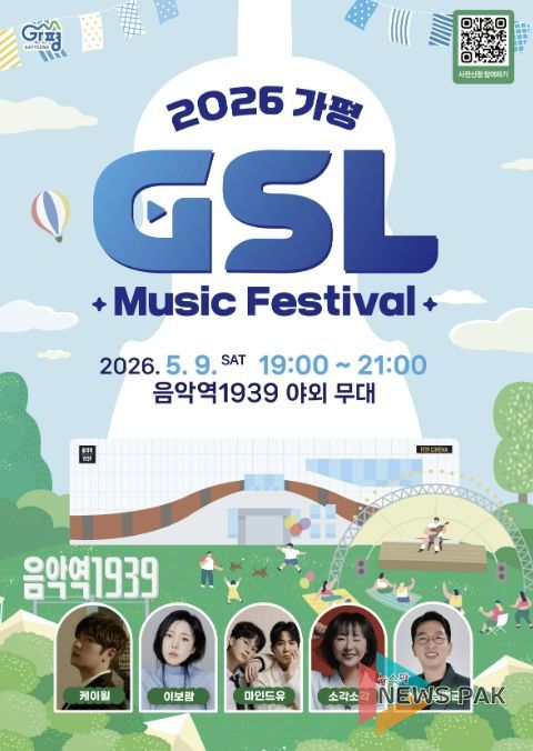 뉴스팍 배상미 기자 | 가평군이 오는 5월 9일 케이윌·이보람 등이 전하는 ‘2026 가평 토요 라이브(G-SL) 5월 스프링 콘서트(뮤직 페스티벌)’를 개최한다.