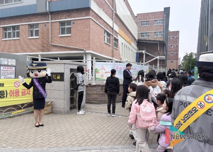 뉴스팍 배상미 기자 | 수원특례시가 22일 영통구 망포초등학교 앞에서 안전한 통학 환경 조성을 위한 ‘민·관·경 합동 교통안전 캠페인’을 펼쳤다.