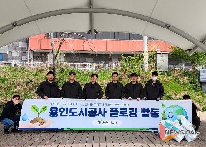 뉴스팍 배상미 기자 | 용인도시공사는 경기도, 용인특례시, 경기주택도시공사, 용인도시공사가 추진 중인 경기용인 플랫폼시티 도시개발사업과 접한 탄천 일대에서 4월 22일 ‘지구의 날’을 맞아 환경 정화 활동인 플로깅 행사를 진행했다.