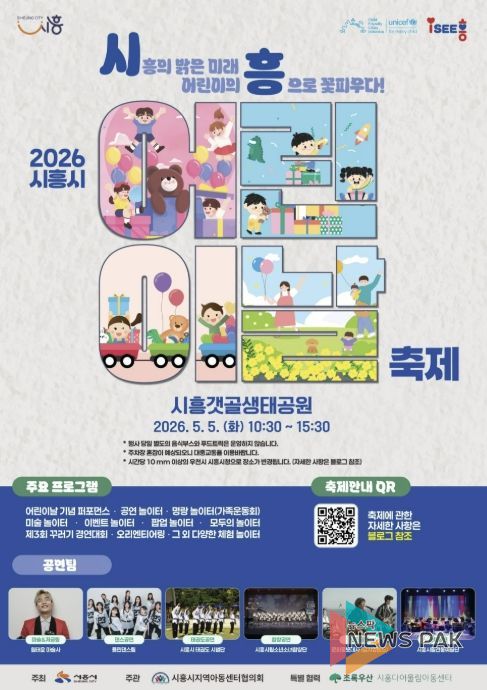 뉴스팍 배상미 기자 | 시흥시는 오는 5월 5일 어린이날을 맞아 시흥갯골생태공원에서 ‘제104회 어린이날 기념행사’를 개최한다.