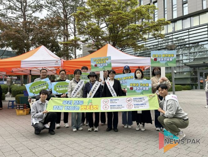 뉴스팍 배상미 기자 | 용인특례시 수지구는 27일 성숙한 반려동물 문화 조성을 위해 수지구청역 인근과 수지구청 광장에서 ‘반려동물 펫티켓’ 캠페인을 실시했다고 28일 밝혔다.