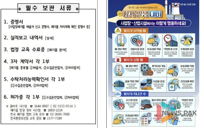이번 홍보물에는 ▲미세먼지 저감을 위한 실천 수칙 ▲황사발생대비 사업장 행동요령 등이 수록됐다. 특히, 폐기물관련사업장에 대해 관련 서류를 상시 관리해야 하는 실무자들의 업무 편의를 고려해, 실무에 즉시 활용할 수 있는 ‘행정 지원 도구’로서의 기능을 강화하는데 중점을 뒀다.