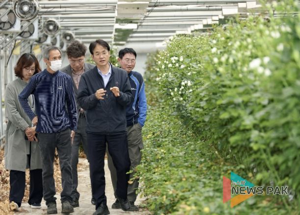 뉴스팍 배상미 기자 | 고양특례시는 이동환 시장이 지난 27일 일산서구 구산동의 장미 재배 농가를 방문했다고 28일 밝혔다.