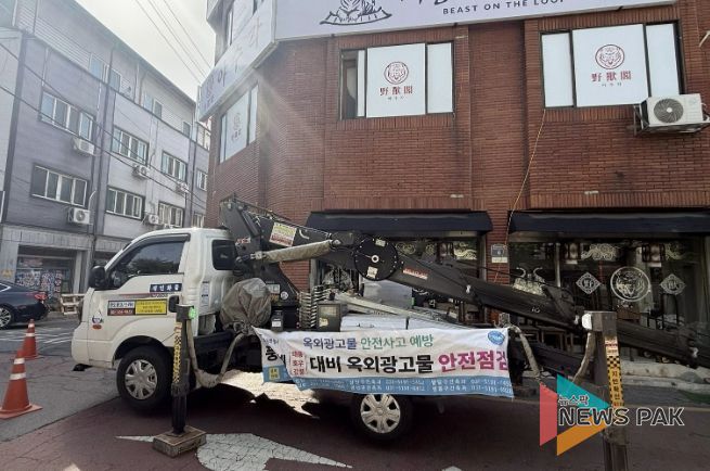 뉴스팍 배상미 기자 | 수원시 영통구는 여름철 풍수해에 대비해 위험 노출이 높은 지역을 중심으로 옥상·지주·벽면·돌출간판 등 옥외광고물 안전점검을 추진한다고 밝혔다.