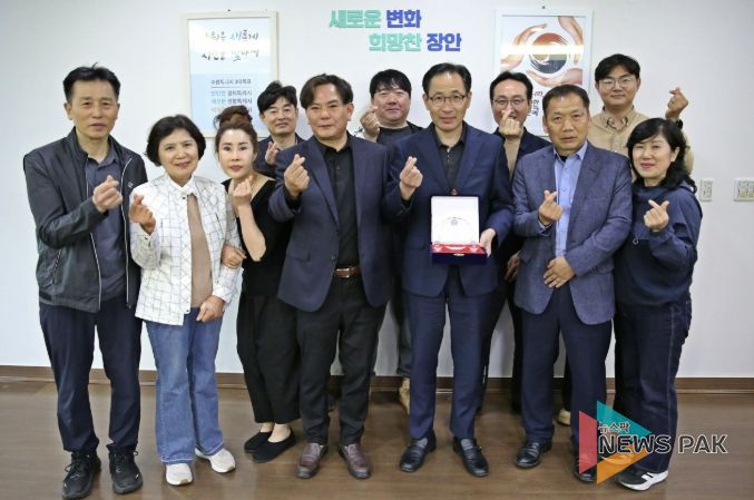 송죽동상인연합회는 최근 성황리에 개최된 2026 만석거 새빛축제가 지역 상권 활성화에 크게 도움이 됐다며, 이에 대한 감사의 뜻으로 이날 이일희 장안구청장에게 감사패를 전달했다.