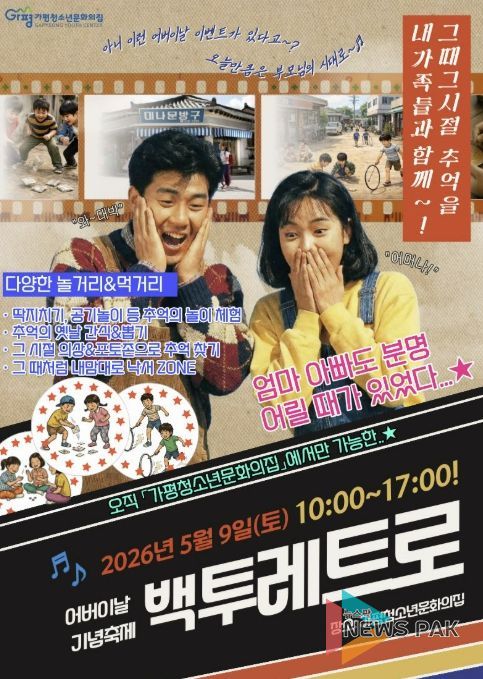 뉴스팍 배상미 기자 | 가평청소년문화의집이 어버이날을 앞두고 5월 9일 세대 간 공감과 소통을 위한 체험형 프로그램 ‘어버이날: 백투레트로’를 운영한다.