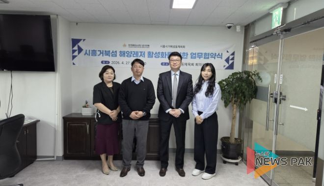 뉴스팍 배상미 기자 | 시흥시 거북섬동 체육회는 지난 4월 27일 한국해양소년단 경기연맹 월곶동 사무실에서 해양레저 교육 프로그램 공동 개발을 위한 업무협약을 체결했다.