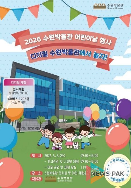 뉴스팍 배상미 기자 | 수원박물관은 5월 5일 오전 9시부터 오후 6시까지 전시실과 야외 체험 공간에서 어린이날 행사 ‘디지털 수원박물관에서 놀자!’를 연다.